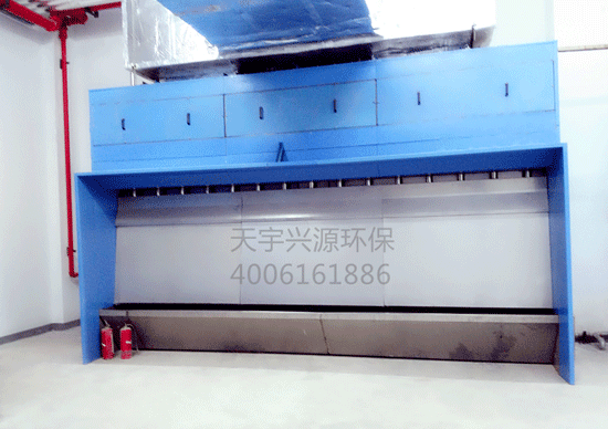 無(wú)泵水幕過(guò)濾器是引進(jìn)的一種濕法處理設(shè)備,無(wú)水泵及復(fù)雜的管道系統(tǒng),避免了水泵、管道及噴咀易堵塞的難題。本設(shè)備形成循環(huán)水幕。含有漆霧或粉塵的空氣首先與水幕撞擊,其中的大部分粘性物質(zhì)被截留于水中。