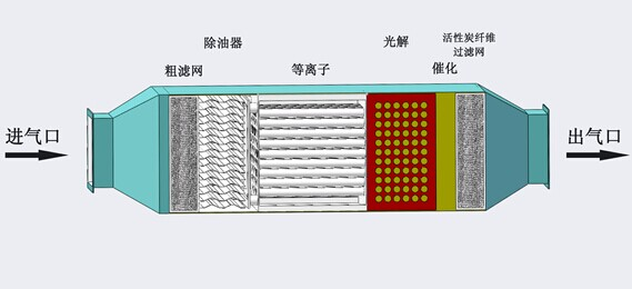 UV+O2→O-+O*(活性氧)O+O2→O3(臭氧),眾所周知臭氧對(duì)有機(jī)物具有極強(qiáng)的氧化作用,對(duì)工業(yè)廢氣及其它刺激性異味有立竿見影的清除效果。工業(yè)廢氣利用排風(fēng)設(shè)備輸入到本凈化設(shè)備后,凈化設(shè)備運(yùn)用高能UV紫外線光束及臭氧對(duì)工業(yè)廢氣進(jìn)行協(xié)同分解氧化反應(yīng),使工業(yè)廢氣物質(zhì)其降解轉(zhuǎn)化成低分子化合物、水和二氧化碳,再通過排風(fēng)管道排出室外。利用高能UV光束裂解工業(yè)廢氣中細(xì)菌的分子鍵,破壞細(xì)菌的核酸(DNA),再通過臭氧進(jìn)行氧化反應(yīng),徹底達(dá)到凈化及殺滅細(xì)菌的目的.從凈化空氣效率考慮,我們選擇了-C波段紫外線和臭氧發(fā)結(jié)合電暈電流較高化裝置采用脈沖電暈放吸附技術(shù)相結(jié)合的原理對(duì)有害氣體進(jìn)行消除,其中-C波段紫外線主要用來去除硫化氫、氨、苯、甲苯、二甲苯、甲醛、乙酸乙酯、乙烷、丙酮、尿烷、樹脂、等氣體的分解和裂變,是有機(jī)物變?yōu)闊o機(jī)化合物。